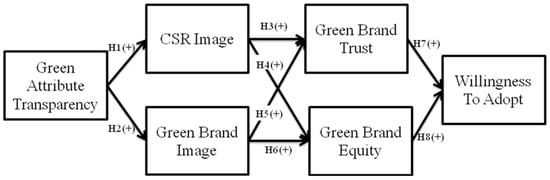 We have argued that when the enterprise presents an impression of higher green brand equity, it will promote the consumers’ higher willingness to adopt enterprise’s green products. The following hypothesis is thus proposed: