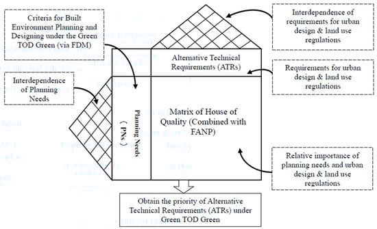 Matrix of house of quality (HOQ) combined with FANP algorithm for the built environment planning and design under the Green TOD.
