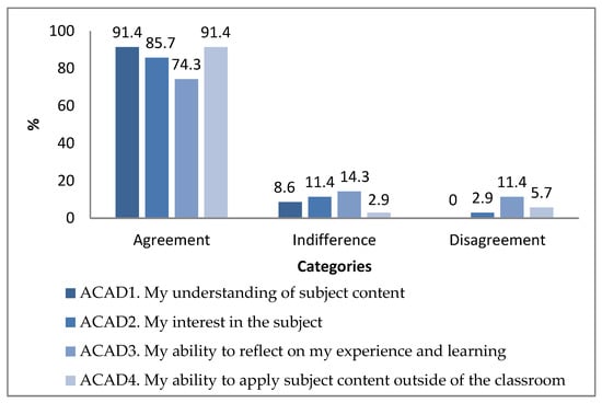 | ACAD4. My ability to apply subject content outside of the classroom |