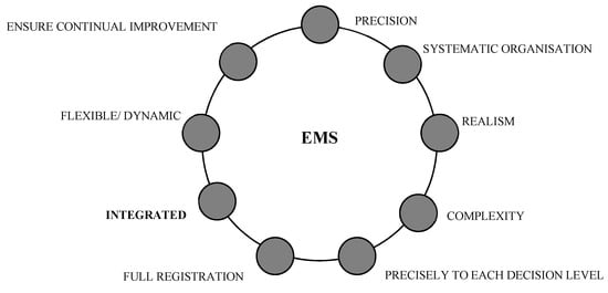 Linking to the main objectives associated with an EMS, its specific characteristics could be observed synthetically in Figure 1.