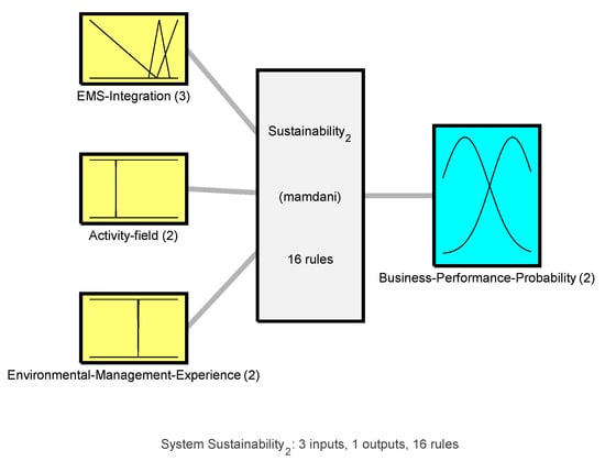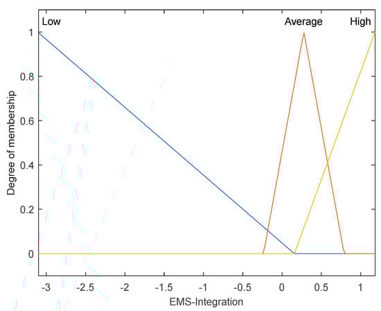 In this study, fuzzy logic has been used to assess the influence of EMS integration on the business performance which is quantified by ROA. The fuzzy algorithms are modelling the human language [108] and are based on previous knowledge that is encoded in the form of antecedent rules to obtain desired conclusions [109]. The fuzzy inference system is a popular computing framework, also known as fuzzy-rule-based-system, fuzzy expert system [110], fuzzy model [111], or fuzzy associative memory [112]. The purpose of a fuzzy inference system is to deduct a conclusion based on the information that is used as input [108]. Inference systems could be implemented by the Mamdani-type [113] or Sugeno-type [114]. The Mamdani method allows to represent the expertise in more intuitive manner [115]. The Sugeno method is computationally effective and works well with optimization and adaptive techniques, which makes it very attractive in control problems, particularly for dynamic nonlinear systems [114,116].