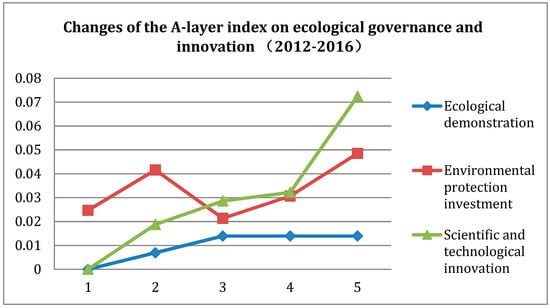 Changes of the A-layer index on ecological governance and innovation (2012–2016) Notes: The data are from the results of the indexes evaluation.