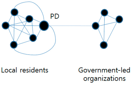 In implementing the Tour Dure initiative, the Korean government established the role of the PD as an intermediary agent for cooperation between government and local residents, and among residents []. Kim and Kim [] emphasized the role of Tour Dure PDs in the relationship between the formation and performance of cooperative governance for Tour Dure. The study revealed that the Tour Dure PD, as an intermediary agent, plays an important role in the increased influence of reliability and policy support on the operational efficiency of the project. The PD serves to reinforce the capacity of local residents and facilitate network activities and the exchange of information among stakeholders []. This study tries to identify the direct role of the PD on building social capital in Tour Dure communities and increasing the innovativeness of participating local residents.