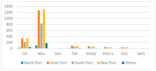 Ports comparison by air pollutants (unit: ton).