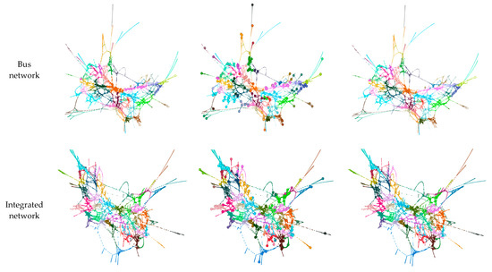 Analysis of the degree of connectedness and modularity pointed to the fact that the integrated network has the highest zonal accessibility compared to the other networks studied in this paper. From our results, we identified that the degree of connectedness in the much larger integrated network was greater than the bus network and had dense connections within its communities. With higher nodal connections, coupled with a larger network, traveling within the integrated network would be relatively easier compared to the bus network. Our results are similar to those in the study conducted by Rubulotta et al. [42], which proved that high zonal accessibility could be achieved in well-connected networks.