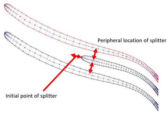 17] argued that the leading edge of sonic compressors could create shock waves when placed in an area greater than Mach one, negatively affecting splitter blades. This problem was solved by moving the starting point of the splitter forward and out of this area. [