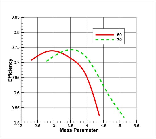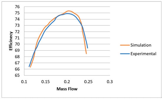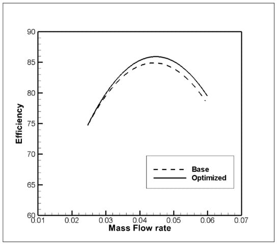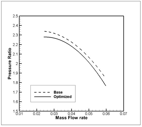 34], of the optimal design dropped by about 0.02%, which is negligible compared to the enhancement of efficiency. The pressure ratio of the compressor can therefore be assumed to remain constant while efficiency was improved to a relatively favorable value.
