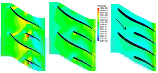 Investigation of the performance of the compressor’s stall and choke is also important. Counters for the relative Mach number are shown to examine the performance of the compressor near the choking situation.