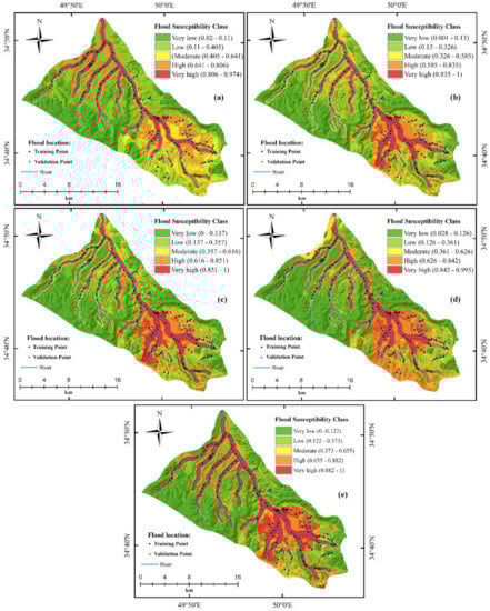 - Shafizadeh-Moghadam, H.; Valavi, R.; Shahabi, H.; Chapi, K.; Shirzadi, A. Novel forecasting approaches using combination of machine learning and statistical models for flood susceptibility mapping. J. Environ. Manag. 2018, 217, 1–11. [Google Scholar] [CrossRef]