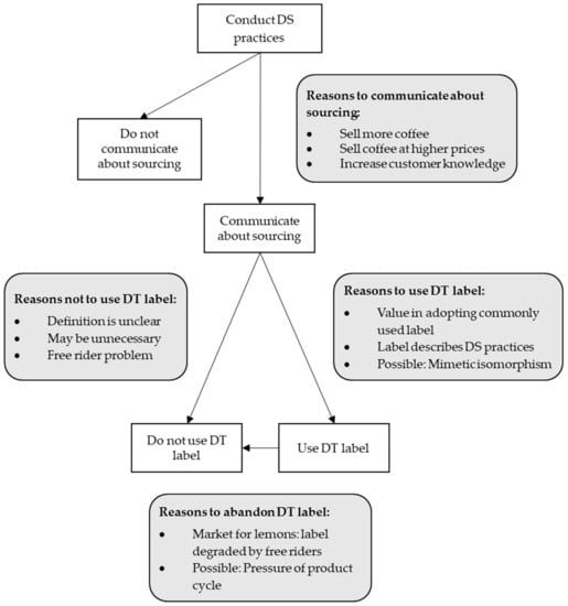 Decision-Making Model for Explaining Why DS Roasters Communicate about DS and Whether or Not They Use the DT Label.