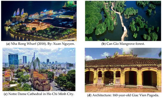 Tourism has become an indispensable need in cultural and social life worldwide. In economic terms, tourism has become one of the important economic sectors of many countries. The economic benefits brought about by tourism are undeniable, through visitors’ consumption of tourism products. The demand of tourists besides the consumption of ordinary goods also has special consumption needs: the need to improve knowledge, sightseeing, health tourism, and relax. Vietnam has become the most attractive destination in the region. The Vietnam General Statistics Office [] reported that international tourists to the country reached over fifteen million arrivals in 2018, contributing around 9% of the GDP. Especially, Ho Chi Minh (HCM) City attracts the most international tourists, and a city has many advantages for the development of sustainable tourism, because it has many scenic spots, culturally and historically bears the impressions of the Vietnamese, Indians, Chinese, Cham, and Khmer, and also has the influences of French and American cultures. This is reflected through constructions like Reunification Palace, Nha Rong Wharf, the Grand Theater, the Post Office, City Hall, and Ben Thanh Market. In the system of ancient pagodas and churches like Giac Lam, Notre Dame, etc. along the Saigon River from Bach Dang Wharf to the downtown, the international tourists can travel in a cruise to enjoy nature, visit traditional craft villages, orchards, ornamental plant gardens, floating markets on the river, and Can Gio Ecotourism Resort, inscribed by UNESCO as Vietnam’s first mangrove forest biosphere reserve. The city is also a gateway where international tourists can come to many famous tourist destinations including Nam Cat Tien National Park, Mui Ne Cape, and the Binh Chau hot spring.