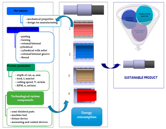 A large part of the total cost of processing a product is represented by the energy consumption. The energy consumption for the realization of a product represents an important aspect that should be taken into account when analyzing the sustainability of a technological process [4,5,6]. In the automotive industry, electricity consumption, for example, represents about 50% of total energy consumption, and generates large quantities of greenhouse gases that cause air pollution [5,7,8,9]. Nearly 35% of global electricity production is used for processing activities which are responsible for nearly 20% of global carbon emissions [6]. Thus, each company should ensure minimal energy consumption and reuse/recycling possibilities.