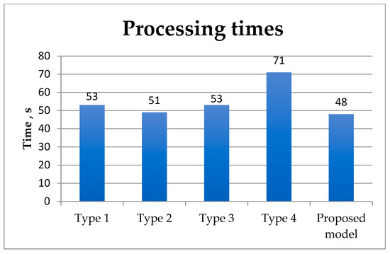 Processing time for the first four types of transition fittings respectively the proposed variant.