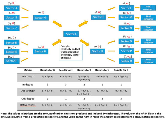 In this paper, five classic network metrics at node level were adopted to analyze the embodied carbon emission network. Table 1 gives a brief introduction of the metrics. More detailed information about the metrics can be found in Appendix A.2.