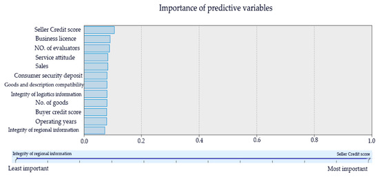 The indicators selected by the decision tree should have certain interpretability, which conforms to the logic of the e-commerce seller credit risk evaluation index system and plays a guiding role in the construction of the e-commerce seller credit risk evaluation system. Meanwhile, the excluded indicators have less influence on the seller’s credit risk evaluation. In principle, the indicators that closely correlated with seller credit, such as seller’s sales, review data and other indicators, should not be excluded.