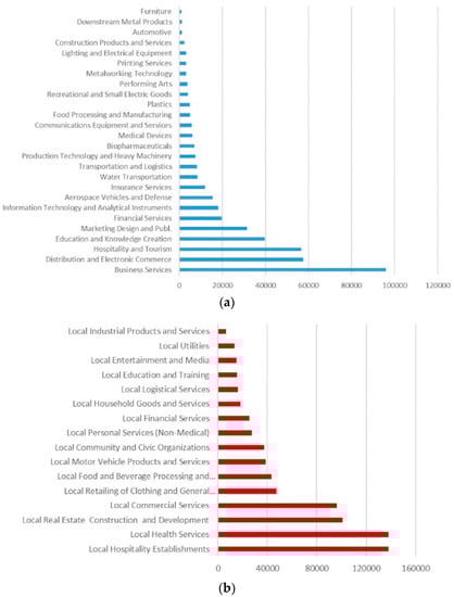 29], the distinctive profile of a regional economy is explained by the occurrence, concentration, and linkages between three main types of industries, namely, traded, local and resource-dependent industries. Such classification, in turn, reflects industry’s variations in (i) localization attributes and geographical pattern, (ii) market size and orientation, (iii) key economic performance indicators reflecting their productive profile, and (iv) competitive dynamics.