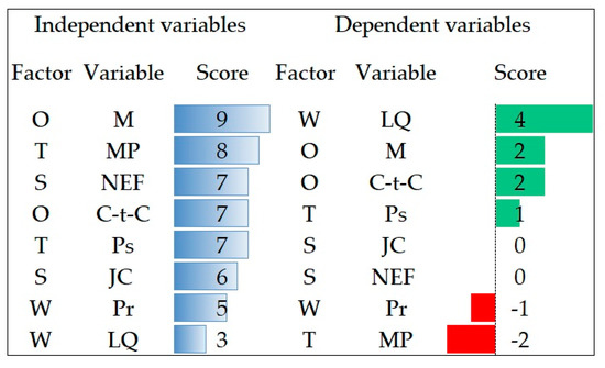Figure 9 shows the totals per row and per column arranged in an ordered list, from the highest to the lowest score.