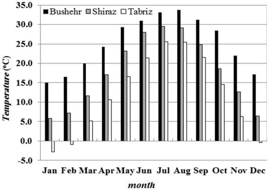 The monthly average temperature of Shiraz, Tabriz and Bushehr cities during the period of 2006–2016, cited by Iran Meteorological Organization.