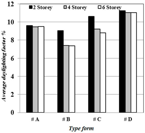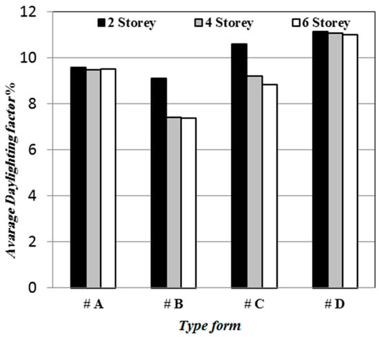 Average daylight factor for all of the building forms during the year in Bushehr.