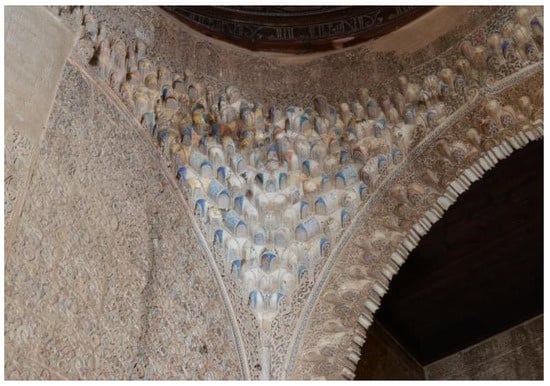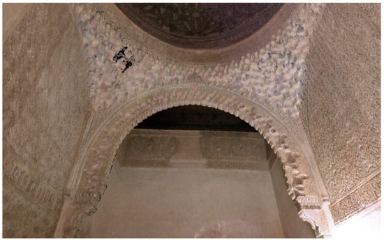 - Domene, R.F.R. Yeserías de la Alhambra: Historia, Técnica y Conservación; Patronato de la Alhambra y Generalife: Granada, Spain, 2010. [Google Scholar]