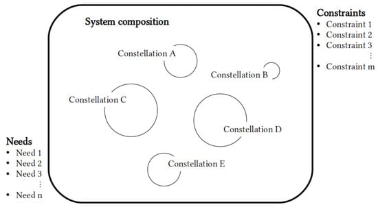 First, consider one constellation in isolation, but embedded in an environment of societal needs and constraints. This environment may—and will—contain other constellations, more on this shortly.
