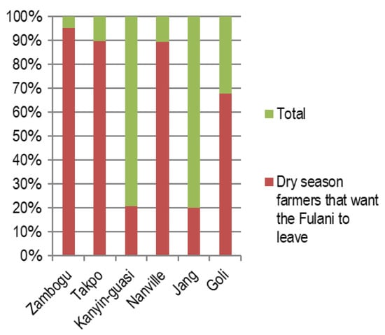 | Socio-Economic Diversity of Farmers | Host Cattle-Owning Fulani | No. of Farmers that Want the Fulani to Leave | Stance towards Fulani from Outside Community | ||