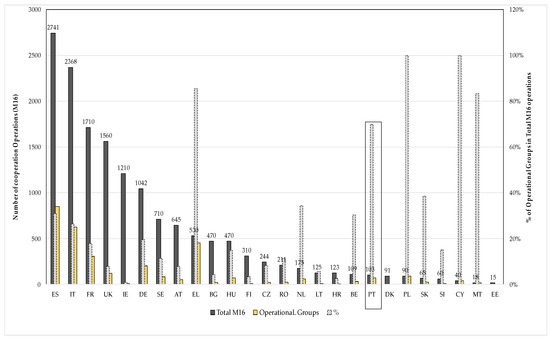 Expected number of cooperation actions supported under Measure 16 (M16), and percentage of Operational Groups (OGs) in total M16. Source: Adapted from RDP [30].