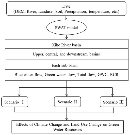 Taking the Xihe River Basin as an example, this study applied the SWAT model and simulated the hydrological cycle under three scenarios to quantify the effect of climate variability and land use change on the amount, and spatial and temporal distributions of green water resources. The research results can provide a scientific basis for planning and management of regional water resources.