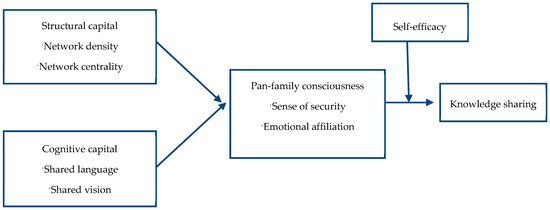 Social capital of virtual brand communities comes from a comparatively secluded network. It creates a psychological environment that helps community members support and respect each other, generating an impact on the subjective behaviors of knowledge-sharing. In China, a family-based society, the concept of family has extended beyond its original reference established according to people’s social codes. Thus, when community members participate in virtual activities, they treat the community as a family. Jing [24] views this family-like sentiment as pan-family consciousness, which can promote people’s loyalty to their communities. It also facilitates people’s participation in community activities and knowledge-sharing in more active ways. The above analysis indicates that members’ assessment of two dimensions of social capital (one being the structural dimension, which includes network density and centrality; and the other being the cognitive dimension, which includes shared language and vision) in their community, has a positive impact on their pan-family consciousness that positively correlates with knowledge-sharing. Therefore, this paper supports the notion that it is through pan-family consciousness that the two dimensions of social capital in virtual brand communities exert their impact on consumer knowledge-sharing. Hence, the following hypotheses: