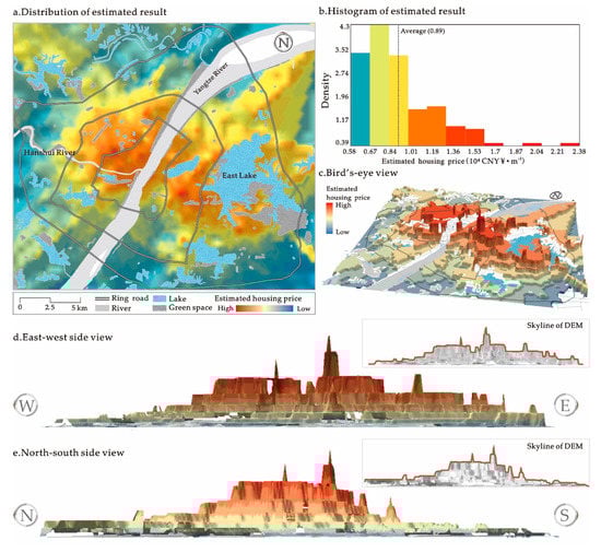 The empirical analysis of the spatial morphology of housing prices confirms the complex urban structure and spatial heterogeneity of Wuhan City. Due to the limitation of the study area, we did not examine how various spatial elements and geographical conditions impact the complex spatial pattern of urban housing prices. However, it is worth noting that previous related studies in Wuhan City found that the proximity to water bodies, green space, transit systems, or CBDs has positive effects on housing price, especially the proximity to the Yangtze River or the East Lake. However, in this paper, the geo–visual analytics of urban housing prices in Wuhan City indicate that housing prices in proximity to water bodies or transit show more complex changes. For example, the housing price is not higher in all directions with proximity to the Yangtze River or Hanshui River. Further, our research provides potential methodological support for the local government of Wuhan City to carry out spatial land allocation, measure housing space welfare, and achieve a spatial balance of housing affordability. At the same time, our three-dimensional visualization results provide a potential basis for a better understanding of the complex urban structures in the local urban planning process.