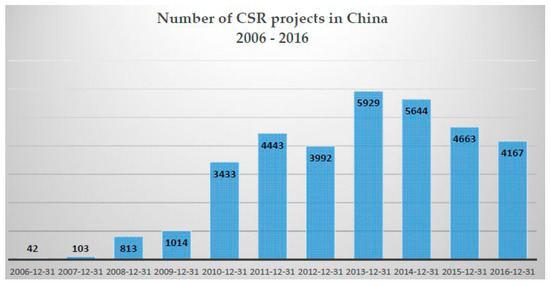 Number of CSR projects in China, 2006–2016. CSMAR database.