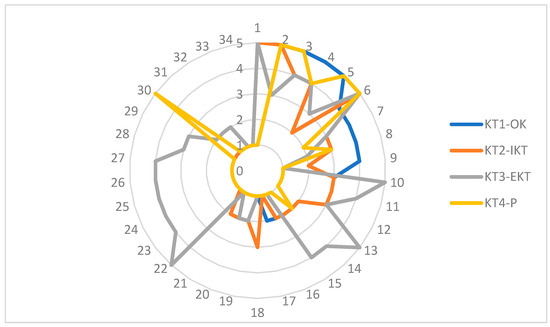 This construct contained a set of 4 variables associated with processes and factors influencing knowledge transfers outside the organization. Open knowledge (KT1-OK) referred to knowledge openly disclosed by organizations in the biotechnology industry, allowing free online access for use, modification, and sharing by third parties. Open knowledge is an indicator of how strategic and principial is the sharing of knowledge to the investigated industry [62,63,64]. It was measured on a scale registering from no open disclosure toward full disclosure of activities and partners, encouragement of further sharing, as well as the provision of guides and tools for knowledge use. The intensity of knowledge transfers (KT2–IKT) was a scale measuring both the frequency of knowledge transfers (from “not at all” and “accidental” to “very frequent updates”) and the scale connected to the variety of knowledge shared. Enablers of knowledge transfers (KT3–EKT) was a complex construct, which could have been observed from a wide variety of perspectives. For the purpose of this study, we considered only external factors, such as strategic alliances and networking and interdisciplinary perspectives on knowledge processes [54,58]. International organizations had a competitive advantage in this respect, since they were both older and more connected organizations, part of large business and research networks. Therefore, they would score much better than the local companies. Publications (KT4-P) was another relevant indicator of knowledge transfer toward third parties [65].