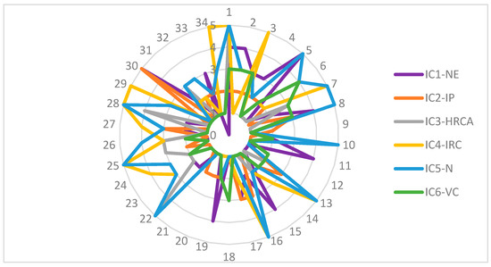 Considering the wide significance of intellectual capital within the framework and limits of the present study, we proposed six items. The number of employees (IC1–NE) was evaluated on a 5-level scale (1–3, 4–9, 10–19, 20–50, and more than 50 employees). The larger the number of employees, the stronger the intellectual capital was. Intellectual property (IC2–IP) considered the types of intellectual assets and their diversity. The items considered ranged from certificates and external recognition to patents. A large portfolio of intellectual property was a positive setting for more intense knowledge transfers. Human-related competitive advantage (IC3–HRCA) referred to a wide range of approaches related to the development of human resources, such as providing training opportunities and human and knowledge exchanges, awards, and recognition for employees. All these issues were considered only through their reflection on companies’ websites. Relational capital is a complex variable [66,67,68,69,70,71]. Considering the purposes and the limitations of the information available, the present study divided relational capital into two areas, internal and external. Internal relational capital (IC4–IRC) was associated with the network developed inside the organization, among its branches. It referred to the mechanism of enhancing intellectual capital inside the organization or group. External relational capital referred to the network (IC5–N) of partners with which the company cooperates. Value creation (IC6-VC) was a prerequisite for knowledge sharing, and it depended on intellectual capital. It was also embedded in the DNA of the organizations of the biotechnology industry, since R&D activities are at their core processes. Previous studies have indicated that knowledge management facilitates value creation and develops intangible assets of companies [72]. The present study aimed to see if value creation strategies lead to the development of intellectual capital, as well as to more intense knowledge transfers. Since we did not have inner data, this subconstruct was measured to track the enablement of value development in communities and third parties through knowledge dissemination. In this framework, the value created by the biotechnology companies would be shared and used by partners and communities to further value development. This construct was evaluated as a facilitator of further value creation. The scale went from no online value provision toward some support for value creation and disclosure, getting to the creation of frameworks for the social use of outcomes, including knowledge. The upper level referred to the enablement of value development in communities through extensive and complex knowledge dissemination. The value created could be therefore freely shared and used by partners and communities, including in frameworks facilitated by the organization investigated.