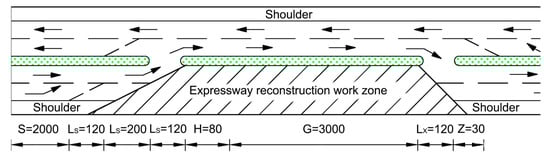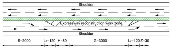 The closed half lane is a traffic organization form of the construction area, which transfers the traffic flow to the opposite lane through the opening of the medial divider, as shown in Figure 3.