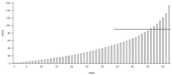 The results of each step in the hierarchical clustering process are depicted in Figure 3, where the values of the agglomerative coefficient are shown. These values represent the value of the distance statistics which is the means for forming the clusters. These coefficients helped us to make the decision concerning the number of clusters to choose. The number of clusters stopped with the number satisfying the condition: “Between two agglomerative coefficients are larger distances” (note: In Figure 3, they are shown by the black line). In this analysis, it was estimated at six clusters.