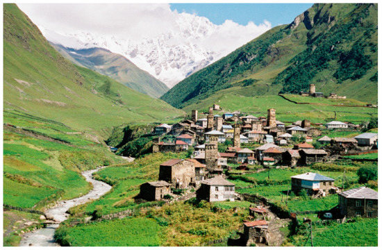 Georgia is a small mountainous country in the South Caucasus region with a population of 3.7 million. About 54% of the territory lies at elevations higher than 1000 m above sea level (a.s.l.) [5], and 42% of the population lives in mountainous areas, where the village of Ushguli, located at 2200 m a.s.l., is one of the highest permanent settlements in Europe (see Figure 1).