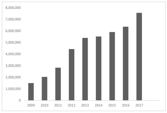 In the global tourism system, the country is a rather new actor that started to promote tourism development as an independent actor only in the late 1990s. Based on reforms in the field of land tenure and property privatization, private entrepreneurship took over the driving role in tourism. Some initial Western investment projects had already begun in Soviet times during the “perestroika” period in the late 1980s, the first of which was the Gudauri Ski Resort in northern Georgia, which was developed by Austrian tourism enterprises [17]. In the early 2000s, after the implementation of incentive programs, such as “Invest in Georgia”, the Free Trade (Tourism) Zone on the Black Sea coast, and visa liberalization policies [21], most of the abandoned Soviet hotels had been integrated into international brands by foreign investors. This process is still ongoing, particularly regarding spa, wellness, and ski resorts [22,23]. All these efforts were followed by fast tourism development in several forms (rural tourism, agritourism, adventure tourism). Between 2009 and 2012, the country attained one of the fastest growth rates of tourism worldwide: visitors increased by almost 300%, from 1.5 million to 4.4 million. From 2012 to 2017, that number further rose to 7.5 million. Total tourism income jumped from US$475 million to US$2.7 billion, and tourism made up 6.9% of the total GDP in 2017 [24,25].