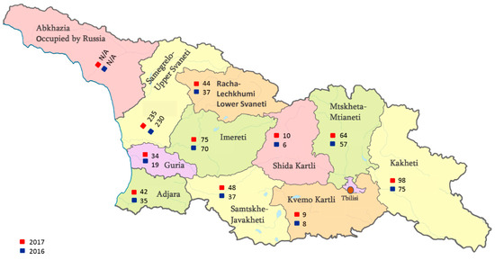 The definition and understanding of alternative forms of tourism has been discussed since 2006, when a project on the development of Rural Tourism was launched by the Swiss Agency for Development and Cooperation (SDC) in Georgia. The project was implemented by the Biological Farmers Association Elkana. It promoted rural tourism as a source of additional income for farmers and rural residents. The project endorsed the establishment of the first Rural Tourism Network in Georgia in 2007. Currently, this network brings together 190 members from different regions [59]. One hundred and sixty guest houses meet the Elkana criteria for service quality. Since 2008, Elkana has been a member of the European Federation of Rural Tourism (EuroGite).