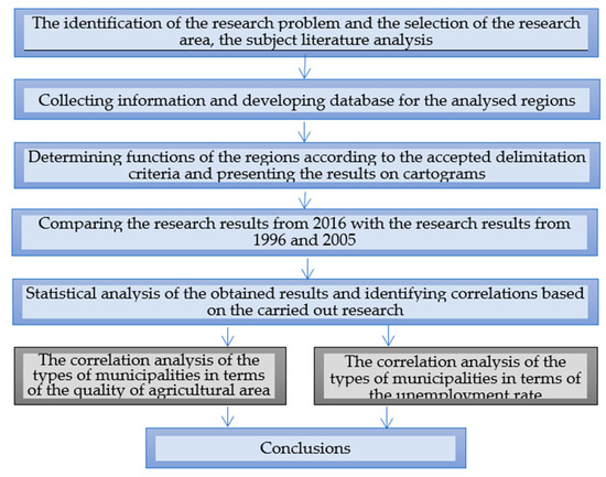 The analyzed potential of rural areas located in Lower Silesia voivode-ship, in terms of qualifying the municipalities to particular functional types in 2016, was referred to the research carried out in 1996, 2005, and 2010 [7,36,37,38,39]. The total timeframe of the conducted analysis is 20 years.