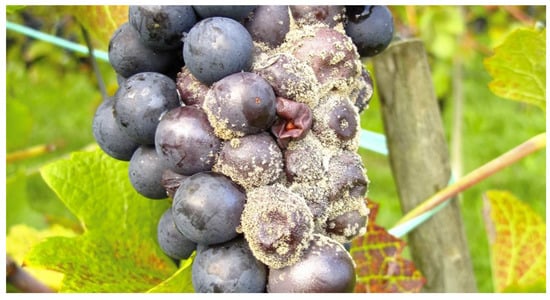 - Broome, J.; English, J.; Marois, J.; Latorre, B.; Aviles, J. Development of an infection model for Botrytis bunch rot of grapes based on wetness duration and temperature. Phytopathology 1995, 85, 97–102. [Google Scholar] [CrossRef]