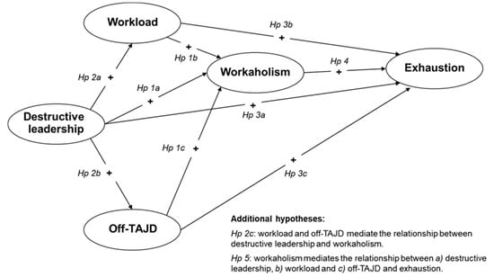According to the idea that the working context may cause the insurgence of workaholism and that high levels of requests coming from the job and supervisor may induce to workaholism as a dysfunctional response to these requests, we could expect a positive relationship between the three job demands and workaholism. Moreover, we hypothesize that the perception of abusive, hostile, and not-supportive behaviours from supervisors may turn into a higher perception of workload and requests to fulfill supplemental work with the aid of technological tools during non-work time. Thus, destructive leadership may be associated with workaholism also through the mediation of both workload and off-TAJD.