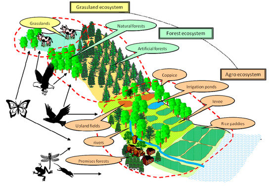 Satoyama landscape is composed of grassland, forest, and agro-ecosystems; it has a set of habitats for rich biodiversity and bundles of ecosystem services for human well-being under traditional management.