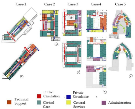 Spatial zoning for the case studies from the medical architecture program (MAP).