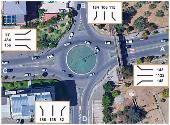 Table 2 shows the capacity evaluation of the case study roundabout according to the Bovy model by using the traffic distribution reported in Figure 2 and the geometric features of the roundabout (Figure 1).