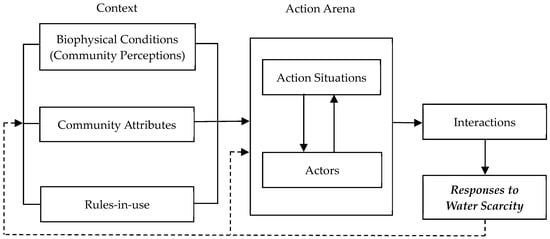 A theoretical framework to analyze farmers’ responses to water scarcity. Adapted from Meinzen-Dick et al. [66] and Ostrom [37,61].