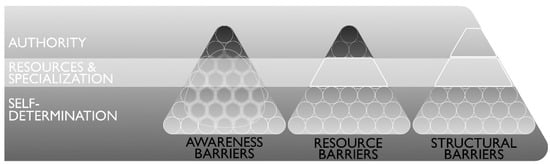 The organizational change literature reports both barriers and drivers that affect the implementation of SD in HEIs. Among the most important barriers to change, Aleixo et al. [] list issues with the concept of sustainability and the rigid structure of HEIs, a lack of commitment among faculty and other university stakeholders coupled with resistance to change, and a lack of resources and know-how. Verhulst and Lambrechts [] (p. 191) also summarize the barriers to change found in the extant literature by dividing them into three broad clusters, namely, (1) those “related to lack of awareness,” (2) those “related to the structure of higher education,” and (3) those “related to the lack of resources.” Since these three groupings encompass the ones mentioned by Aleixo et al. [], we applied them to our institution of higher learning.