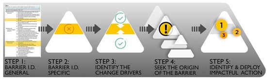 The five-phase assessment of the current status of SD at KSU led to a list of barriers and associated change drivers, displayed in Table 2. The assessment phases were (1) identification of relevant barriers from Verhulst and Lambrechts [], (2) identification of specific KSU barriers, (3) identification of change drivers at KSU, (4) designation of when the barrier emerged, and (5) the degree of significance or impact of each item (for a depiction of the process model, see Figure 2).