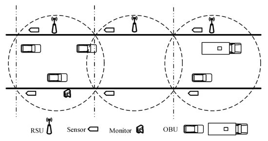 As a key symbol of smart cities, intelligent and connected transportation systems (ICTSs) are growing rapidly, and so vehicular ad hoc networks (VANETs) have attracted a great deal of attention in the research community because of their contributions to road safety, traveling support, traffic efficiency, user-oriented service, etc. [,]. Urgent information, traffic-related information, and entertainment information are exchanged either between on-board units (OBUs) in vehicle-to-vehicle (V2V) scenarios or between OBUs (or sensor nodes) and infrastructure in vehicle-to-infrastructure (V2I) environments. Furthermore, data collected on the road can be forwarded to any other data centers through vehicle-to-everything (V2X) communications [].