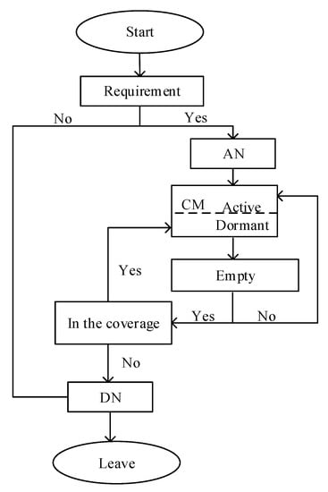 On the other hand, although many sleeping-based power-saving mechanisms were studied, most of them were based only on computer simulations or energy consumption models [,], or only the maximum achievable energy efficiency was analyzed. However, the passive vacation or sleeping state resulting from the zero-arrival state of nodes is rarely considered during system modeling, which has led to a decrease in accuracy []. This situation requires a theoretical model that can easily assess the quantitative relationship among system performance, sleeping factor, and network control parameters.