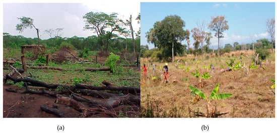 Understanding of land use change (LUC) dynamics is crucial for sustainable land resource management in developing countries, especially in Saharan Africa where the majority of the people depend on natural resources from the landscape for their livelihoods [1]. LUC is linked with the sustainable development of a particular geographical area since it is associated with the flow of energy, landscape conditions, biotic conditions and chemical and physical characteristics. Sustainable development entails development that addresses the needs of the present generation without negatively affecting the ability of the future generation to meet their own needs [2]. It refers to environmental sustainability (ecosystem protection, environmental management, etc.), economic prosperity (economic growth, employment opportunity, etc.) and social equity (socio-cultural development, political stability and decorum, etc.), which basically implies addressing issues relating to land use changes. LUC is widely acknowledged to increase soil erosion rates, land degradation, wetland conversion and degradation, habitat degradation and the loss of biodiversity on the earth [3,4,5,6]. Land use is referred to how the land with biophysical resources (land cover) is being utilized such as agriculture, logging, residential and industrial use, and so forth [7]. Land cover refers to the actual cover (biophysical resources) on the surface of the earth. However, the term land use and land cover are used interchangeably in most studies [8]. Land use and land cover change (LULCC) are the results of changes and/or the modification in the intensity of an existing land use and cover type due to natural factors and anthropogenic activities [9]. According to the FAO [10], land use changes are associated with agricultural expansion/intensification, urbanization, deforestation and the conversion of wetlands to pasture and agricultural lands. On a global scale, anthropogenic activities such as agriculture, industry and transport underlined with various socio-economic, political and institutional factors have resulted in land use changes [11]. In Europe, for instance, it is evident that the landscape has been profoundly changed due to political and socio-economic changes that occurred in the first half of the 19th century [12]. In some parts of Africa, the expansion of agriculture influenced by rapid population growth has been recognized as a primary driver of LUC [1]. Despite the influence of anthropogenic activities on land use change, the variability in natural factors such as climate change and variability, soil conditions and terrain characteristics have also accounted for land use changes [13,14]. Therefore, the integration of natural and human factors in the explaining LUC dynamics has become the focus area for most LULCC research [15].
